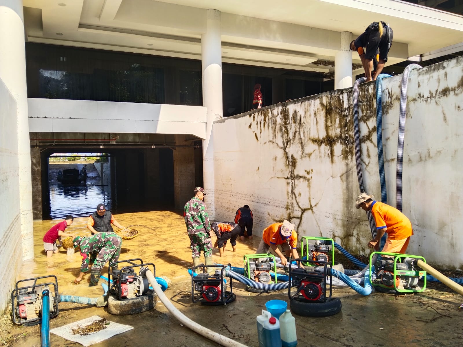 Kegiatan gotong royong tersebut difokuskan pada area lantai dasar Kantor Pemerintah Kabupaten Pesisir Barat yang sempat tergenang air. Dengan menggunakan peralatan sederhana, para anggota bersama tim BPBD berupaya menguras sisa air serta membersihkan lumpur yang terbawa arus banjir.