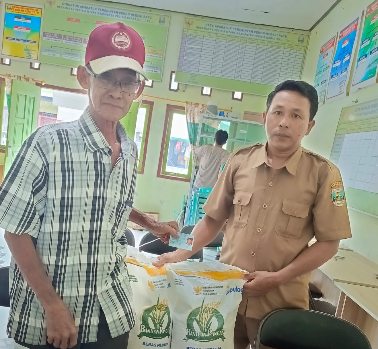 Idnnewspublish.com, Pesisir Barat —– Pemerintah Desa (Pekon) Negeri Ratu Kecamatan Pesisir Utara Kabupaten Pesisir Barat, laksanakan kegiatan pembagian bantuan beras kepada 74 keluarga penerima manfaat (KPM) Kegiatan tersebut dilaksanakan ditempat di balai Pekon setempat., Jumat (08/08/2025).