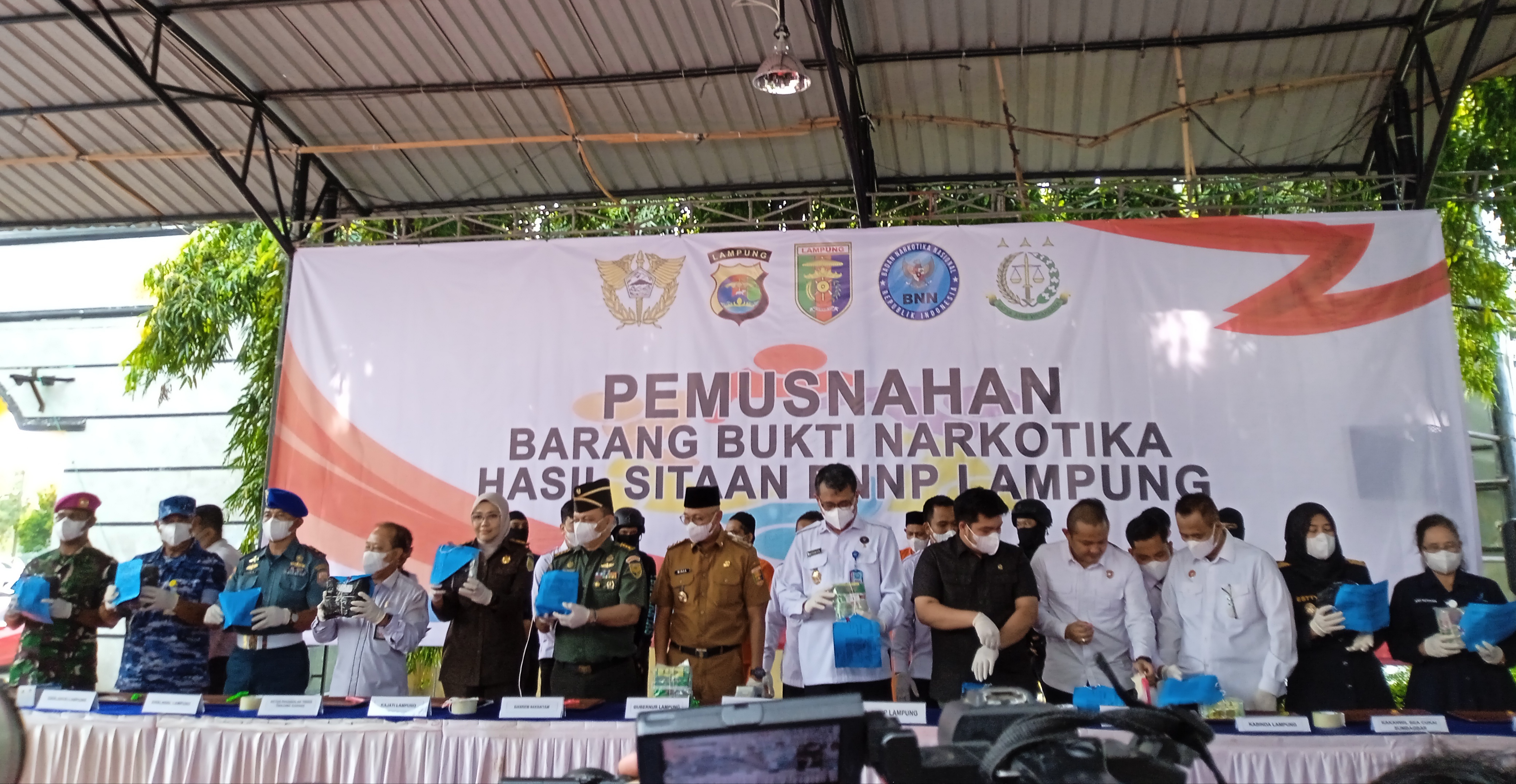 BNNP Lampung Musnahkan Barang Bukti Sitaan Narkotika Lintas Provinsi