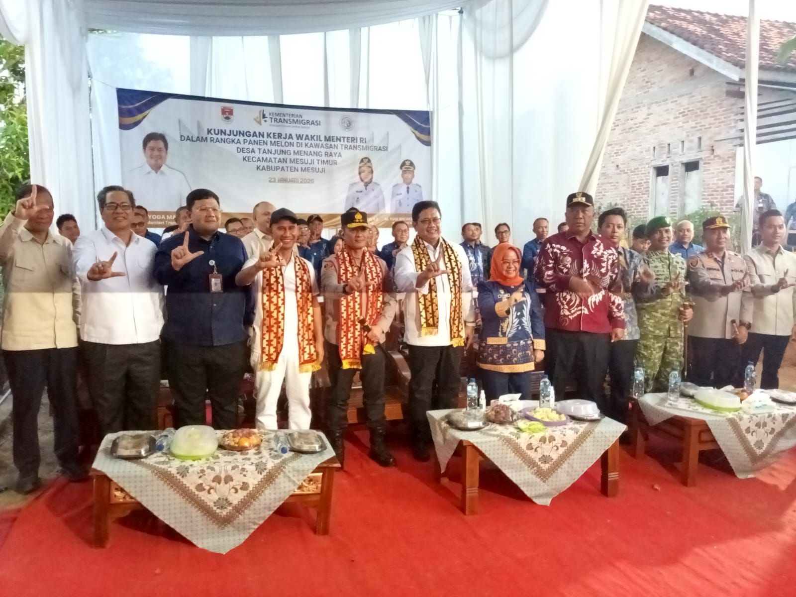 Idnnewspublish.com, Mesuji — Bersama unsur Forkopimda Bupati Mesuji, Elfianah, menerima kunjungan Wakil Menteri (Wamen) Transmigrasi Republik Indonesia, Viva Yoga Mauladi, di Green House Melon Tanjung Menang, Jumat (23/01/2026).