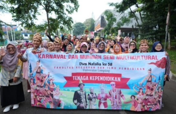 Ia menegaskan, peringatan Dies Natalis ke-58 FKIP Unila tidak semata menjadi ajang perayaan, tetapi juga sarat nilai kehidupan, sebagaimana tercermin dalam penyelenggaraan karnaval dan muhibah seni yang melibatkan 31 program studi di lingkungan FKIP dengan 15 program studi terakreditasi Unggul.