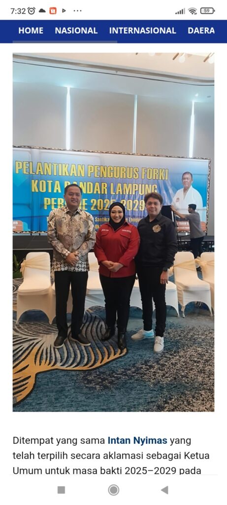 Idnnewspublish.com, Lampung — Pelantikan pengurus baru Federasi Olahraga Karate-Do Indonesia (FORKI) Bandar Lampung periode 2025-2029 dihadiri Walikota Bandar Lampung Eva Dwiana yang diwakili oleh Wilson Faisol, Asisten Pemerintahan dan Kesejahteraan Rakyat, acara digelar di Hotel Santika Bandar Lampung, Sabtu,(25/10/2025) berjalan tertib dan sukses.