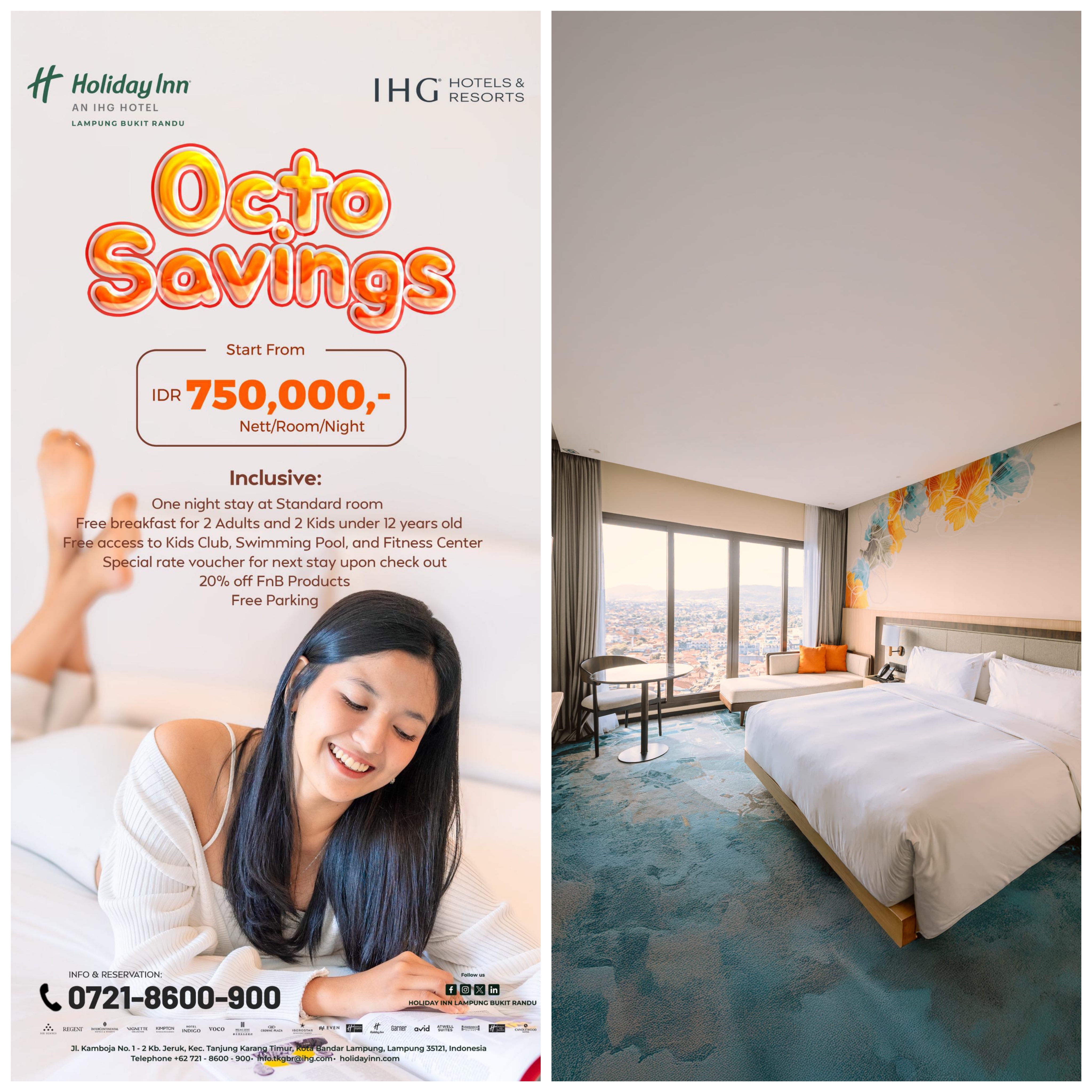 Idnnewspublish.com, Lampung — Menyambut bulan Oktober 2025, Holiday Inn Lampung Bukit Randu menghadirkan promo spesial bertajuk “OctoSavings” yang menawarkan pengalaman menginap nyaman dengan harga terjangkau.