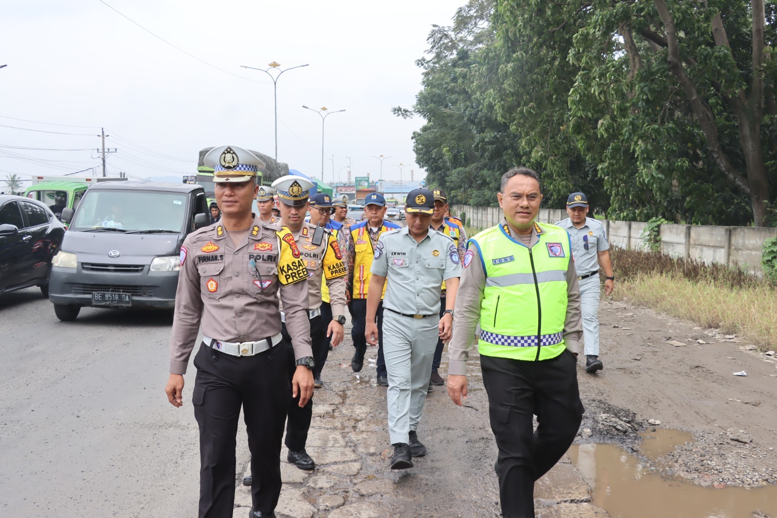 Tim asistensi didampingi jajaran Direktorat Lalu Lintas Polda Lampung serta Satlantas Polresta Bandar Lampung melakukan peninjauan langsung ke sejumlah titik, di antaranya di Jalan Soekarno Hatta, tepatnya di depan SMA Negeri 5 Bandar Lampung dan di depan Rumah Makan Begadang V.