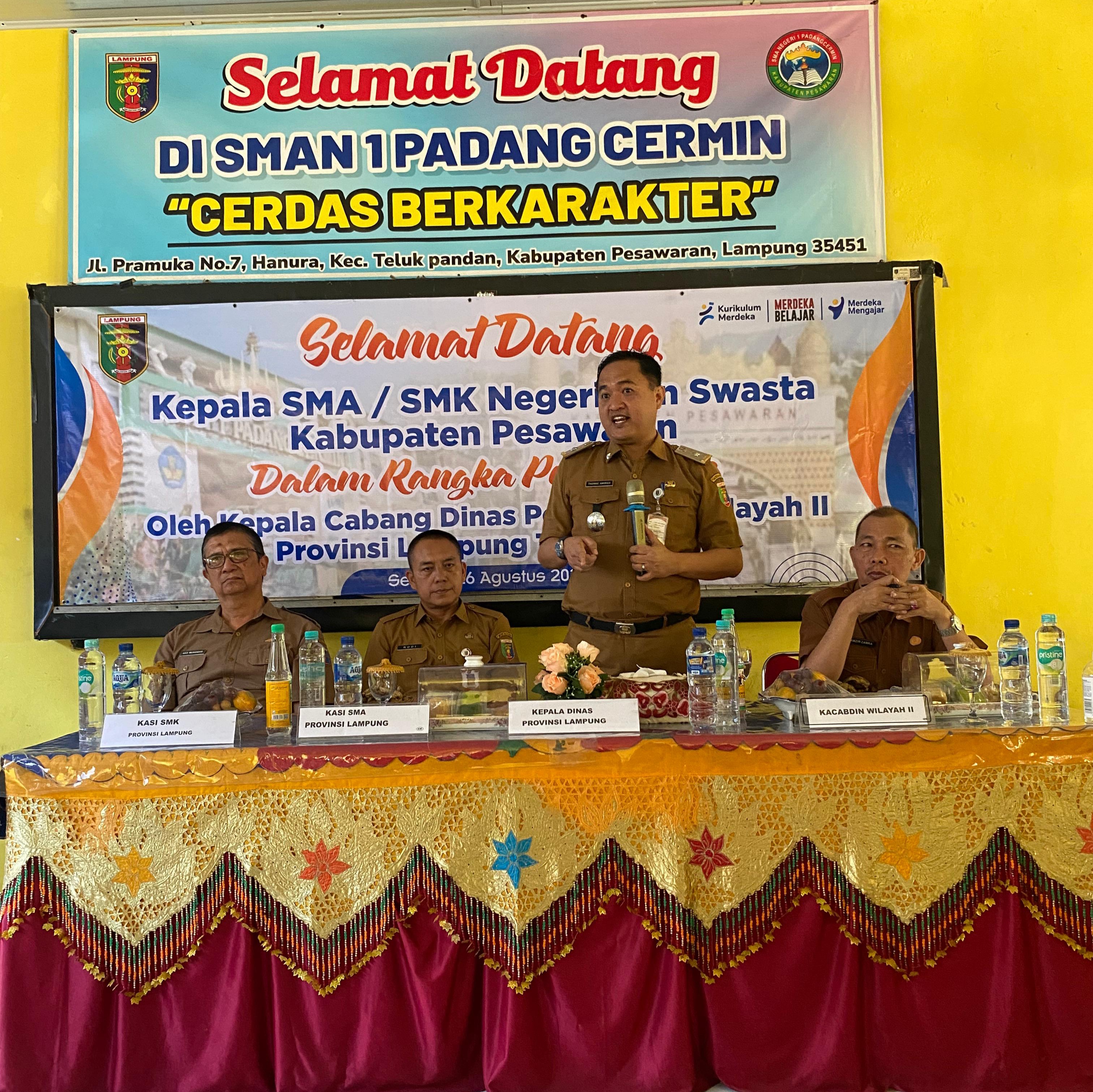 Idnnewspublish.com, Pesawaran — Kepala Dinas Pendidikan dan Kebudayaan Provinsi Lampung, Thomas Amirico, S.STP., S.H., melaksanakan kegiatan pembinaan bagi seluruh kepala sekolah jenjang SMA/SMK Negeri dan Swasta se-Kabupaten Pesawaran.