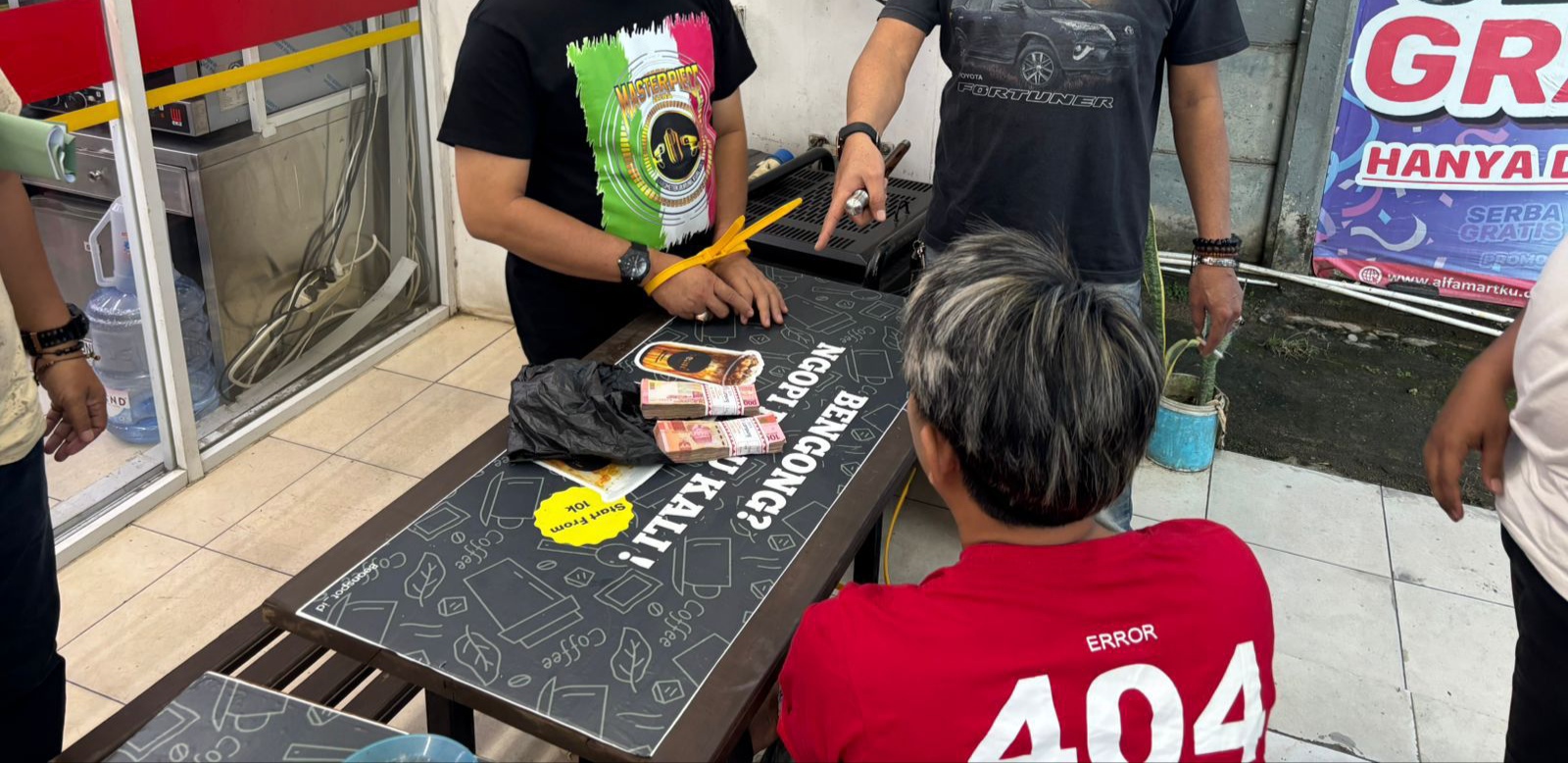 Setelah pertemuan, saat Wahyudi dan Fadly berjalan menuju mobil mereka, Yuda mengikuti dan meletakkan sebuah kantong plastik hitam di dalam mobil, Penangkapan terjadi tidak lama setelah itu.