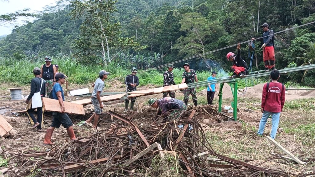 Pengerjaan jembatan tersebut dilaksanakan oleh Tim Vertical Rescue Indonesia (VRI) Jembatan Garuda bersama unsur TNI, Polri, pemerintah daerah, dan masyarakat, Selasa (23/12/2025).