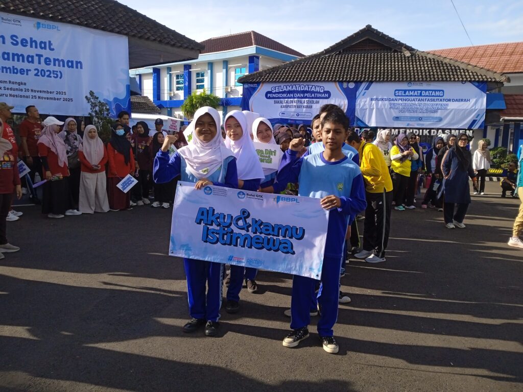 “Jadi kita UPT Kemendikdasmen — BGTK, BPMP, dan Balai Bahasa, diminta untuk mengadakan kegiatan jalan sehat yang melibatkan siswa dan guru. Kegiatan ini sekaligus menjadi ajakan untuk menebar pesan-pesan kebaikan,” ujar Hendra.