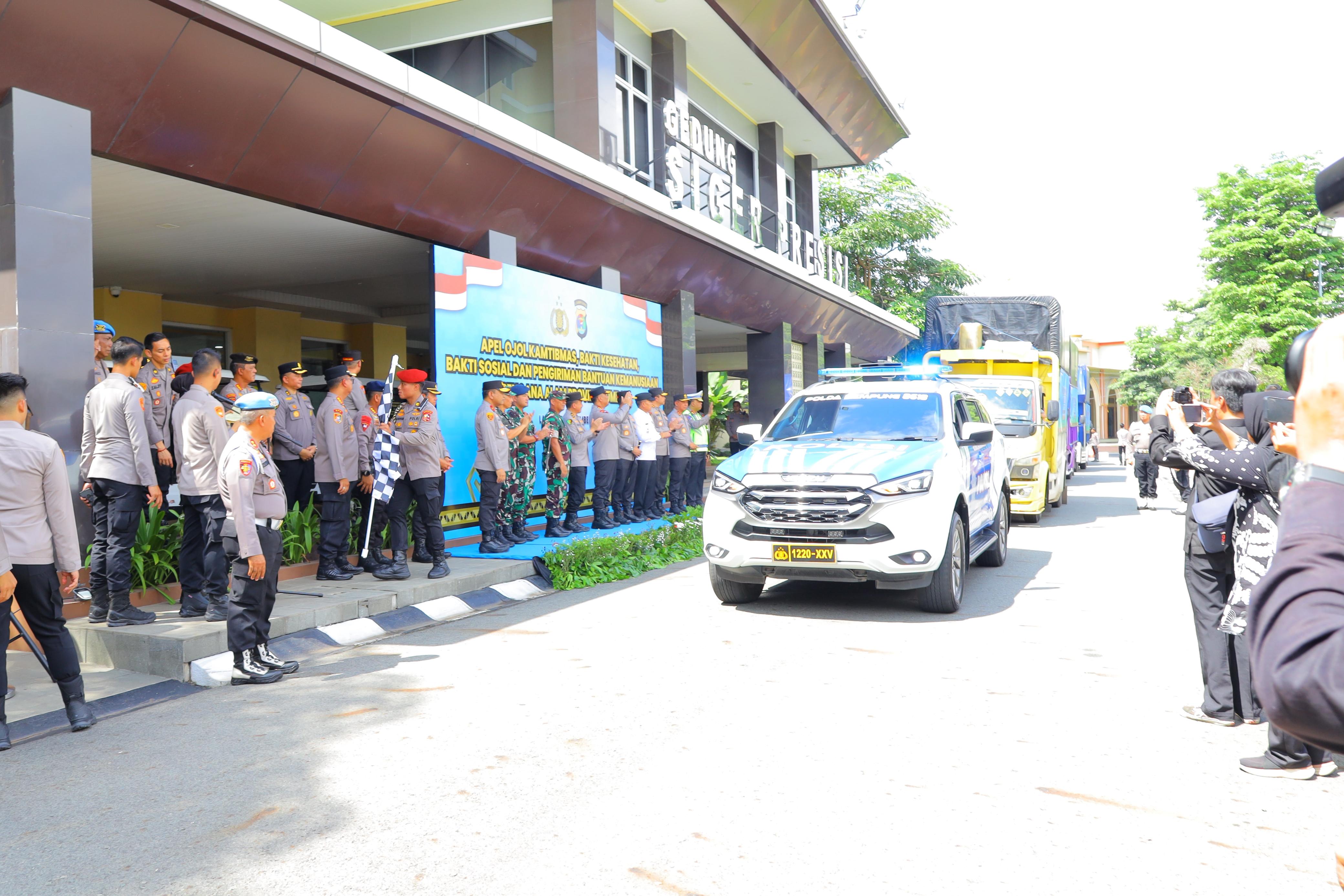 Polda Lampung berangkatkan 14 truk dan 2 mobil patwal dengan membawa beras 12.489 kg, pakaian 2.643 pcs, makanan 1.002 kaleng, juga perlengkapan bayi, dan sembako lainnya.