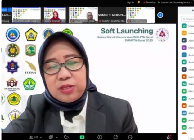Idnnewspublish.com, Lampung — Rektor Universitas Lampung (Unila), Prof. Dr. Ir. Lusmeilia Afriani, DEA., IPM., ASEAN Eng., mewakili Ketua BKS Barat, membuka acara soft launching Seleksi Mandiri Masuk Perguruan Tinggi Negeri Wilayah Barat (SMMPTN-Barat) 2025 yang dilaksanakan secara daring, Senin (21/04/2025), pukul 16.00 wib.