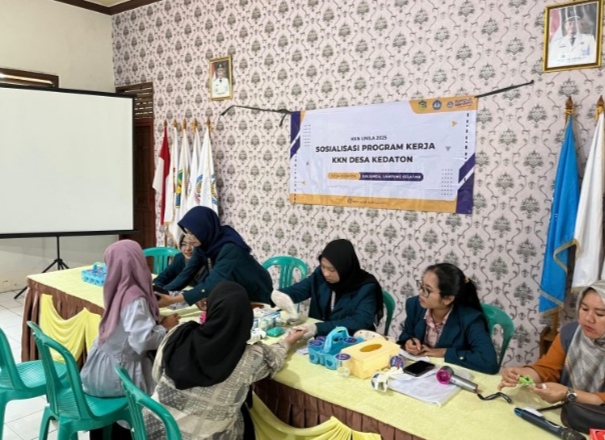 Idnnewspublish.com, Lampung — Mahasiswa Kuliah Kerja Nyata (KKN) periode I tahun 2025 Universitas Lampung (Unila) di Desa Kedaton, Kecamatan Kalianda, menggelar program edukasi kesehatan tentang diabetes melitus serta layanan pemeriksaan kesehatan gratis. Kegiatan ini diprakarsai oleh Tim KKN Desa Kedaton di bawah bimbingan Dosen Pendamping Lapang Munti Sarida, Ph.D., dengan peran aktif dari salah satu mahasiswa, Mutiara Vira Antonia.