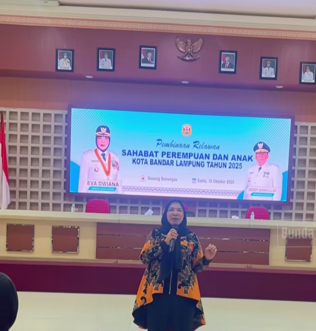 Idnnewspublish.com, Bandar Lampung — Walikota Bandar Lampung, Eva Dwiana, menghadiri sekaligus memberi sambutan pada penyerahan Rompi dan Insentif bagi Relawan Sahabat Perempuan dan Anak (SAPA) Kota Bandar Lampung Tahun 2025.