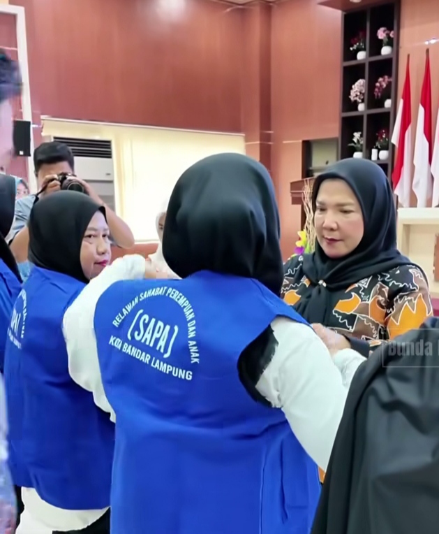 Idnnewspublish.com, Bandar Lampung — Walikota Bandar Lampung, Eva Dwiana, menghadiri sekaligus memberi sambutan pada penyerahan Rompi dan Insentif bagi Relawan Sahabat Perempuan dan Anak (SAPA) Kota Bandar Lampung Tahun 2025.