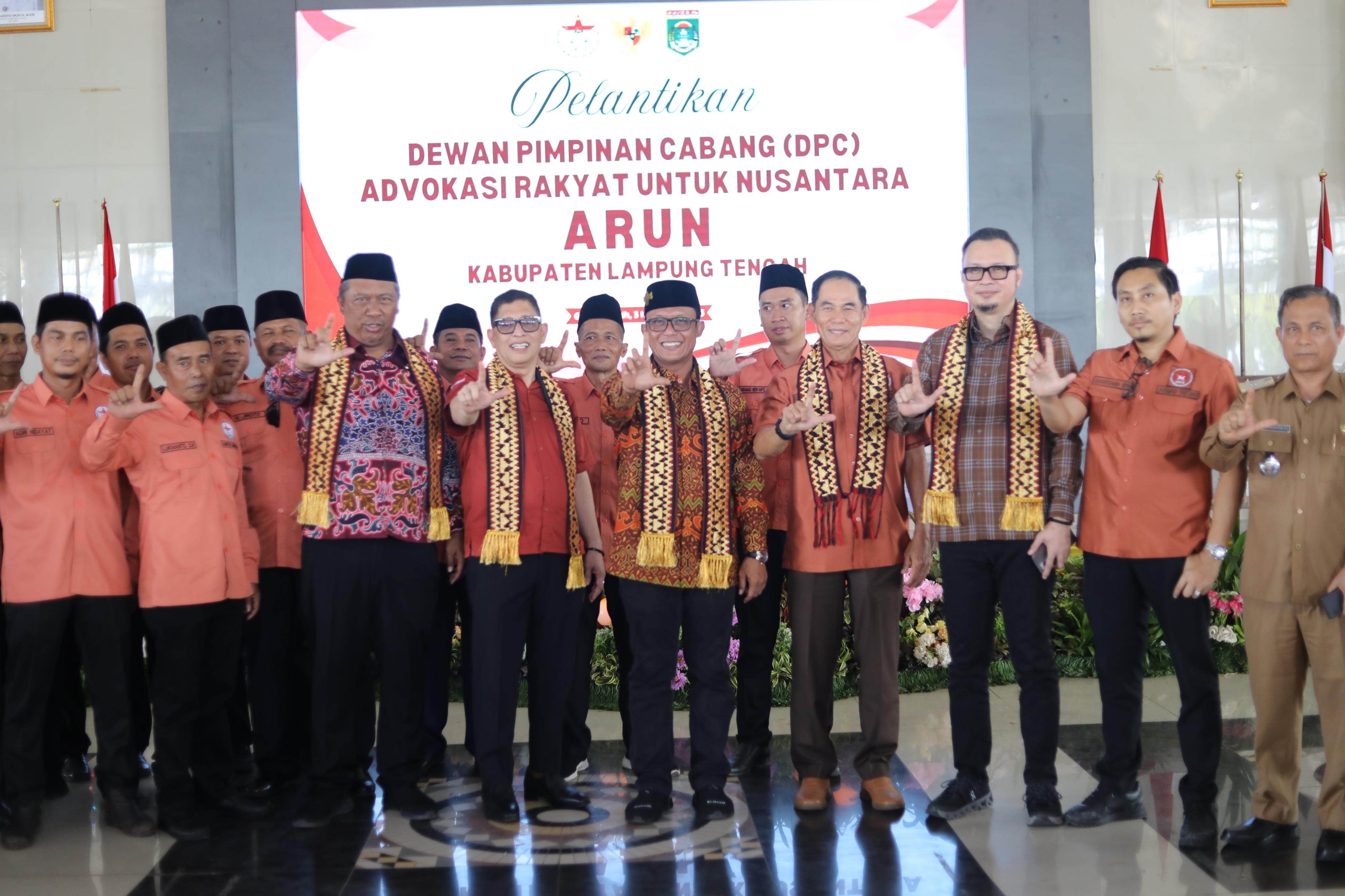 Pelantikan Dewan pimpinan Cabang Advokasi Rakyat untuk Nusantara(ARUN) dihadiri Bupati Lampung Tengah, Ardito Wijaya, didampingi Wakil Bupati I Komang Koheri,dan dipimpin langsung oleh Ketua Umum DPP ARUN, Bob Hasan.
